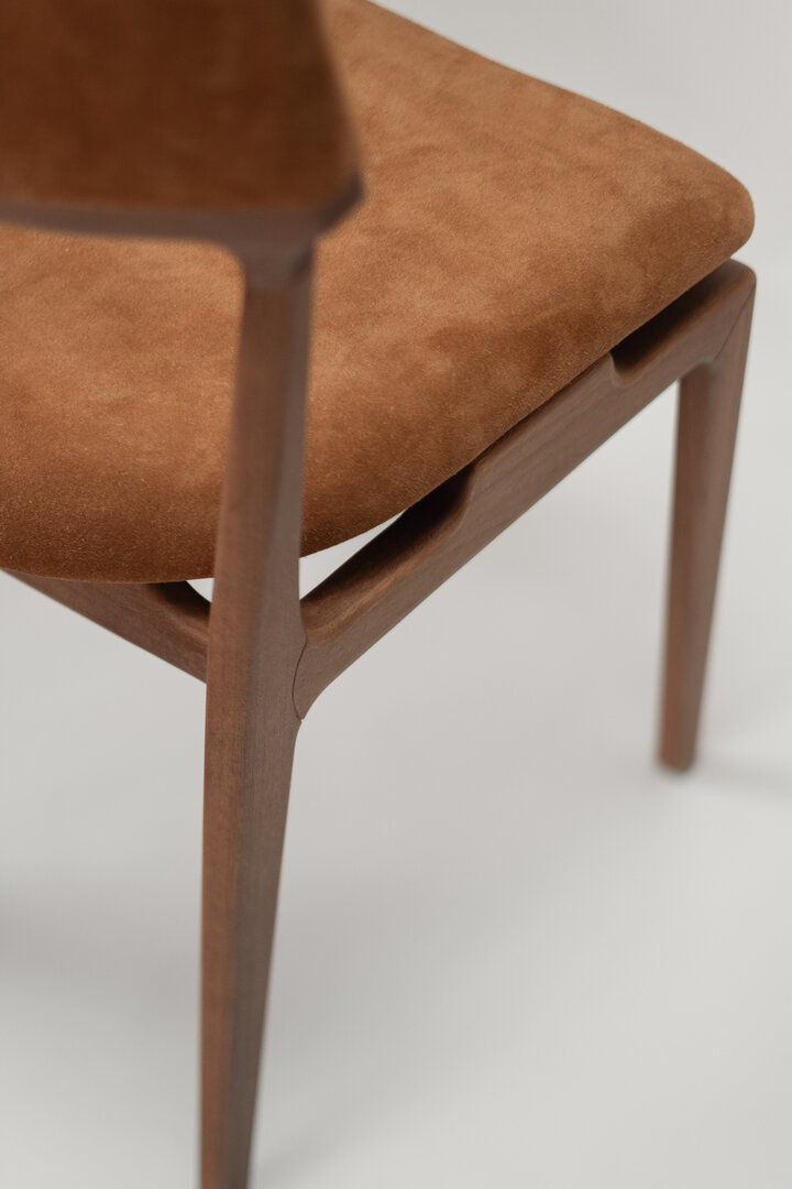 Toda matéria aspira à forma. A madeira curva-se como quem se rende ao tempo. O aço sustenta como quem promete permanência. O estofado acolhe como quem entende o corpo. Em cada peça, há uma afirmação da vida naquilo que aparentemente é apenas utilitário, o objeto só se torna pleno quando habitado poeticamente. Por isso, mais do que móveis, proponho moradas sensíveis para a experiência humana. Nada me é mais caro do que a afetividade. Rejeito o supérfluo em favor da clareza, desprezo o excesso em nome daquilo que se sustenta por si. Meu ideal estético é aquele que eleva o espírito ao mesmo tempo em que serve ao corpo. A forma deve emocionar sem ofuscar, a função, servir sem banalizar. É no entrelaçamento entre corpo, espaço e objeto que se revela a experiência estética verdadeira. Meus desenhos não almejam ser ícones, querem ser presença. Não querem adornar o tempo, querem vivê-lo com profundidade.